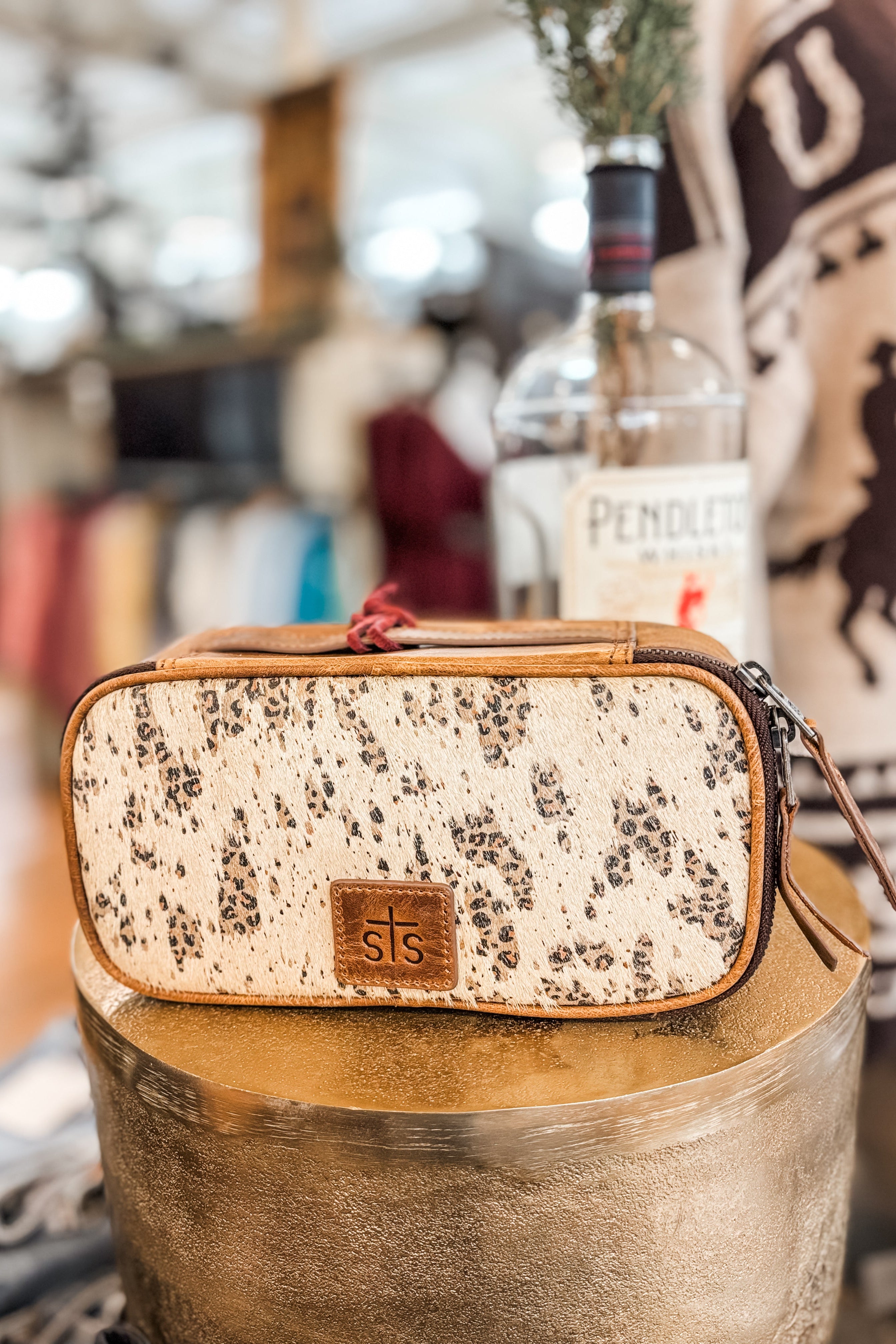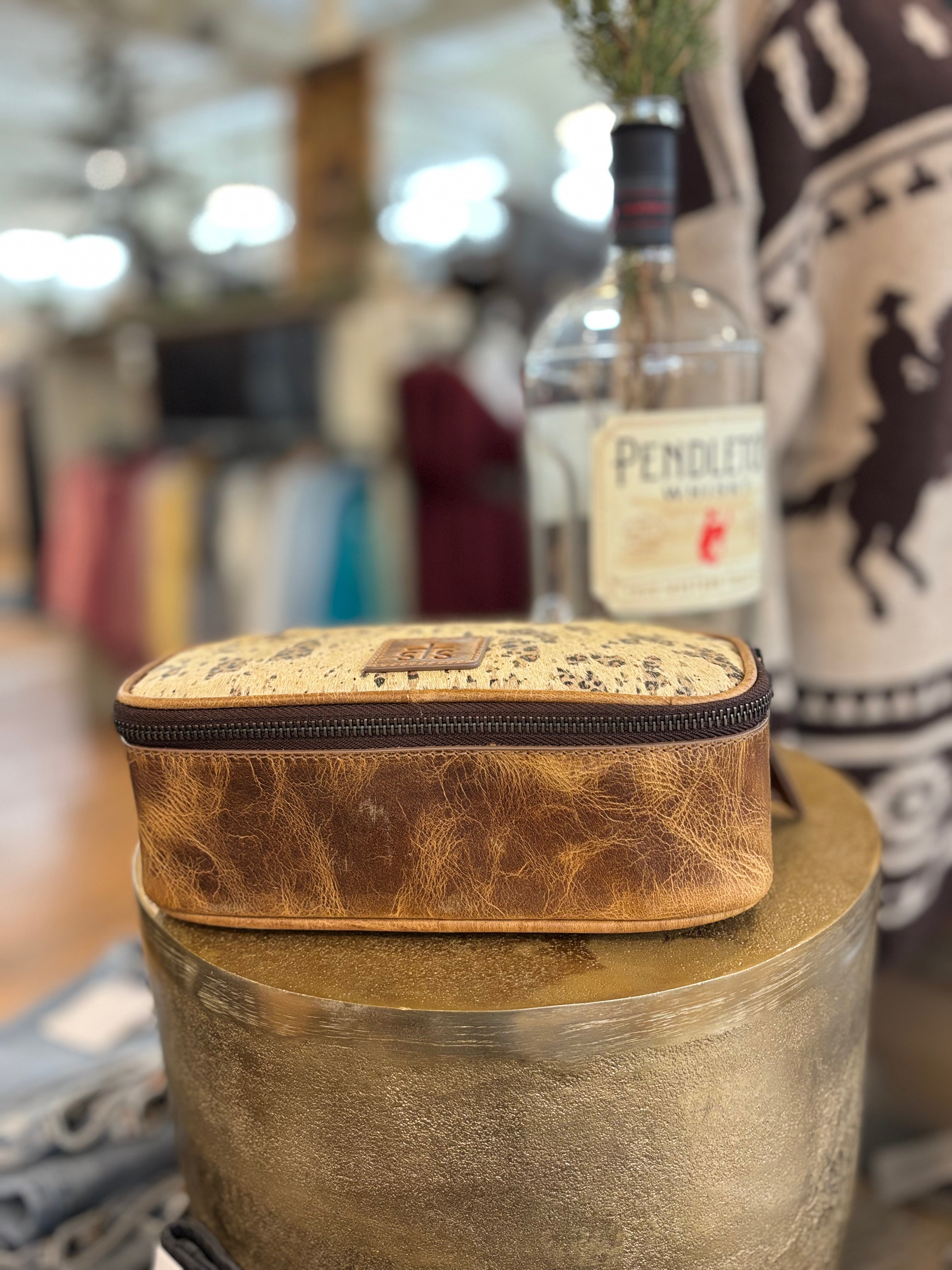 Stylish and functional, the Serengeti Ada Makeup Kit features genuine hair-on-hide with a bold leopard print, accented with full-grain leather for a luxurious touch. The zip-top closure keeps your essentials secure, while a leather side handle makes it easy to carry. Inside, you’ll find a zip mesh pocket and an inspiring “You are enough” quote, along with an STS embossed leather patch for a signature finish.
