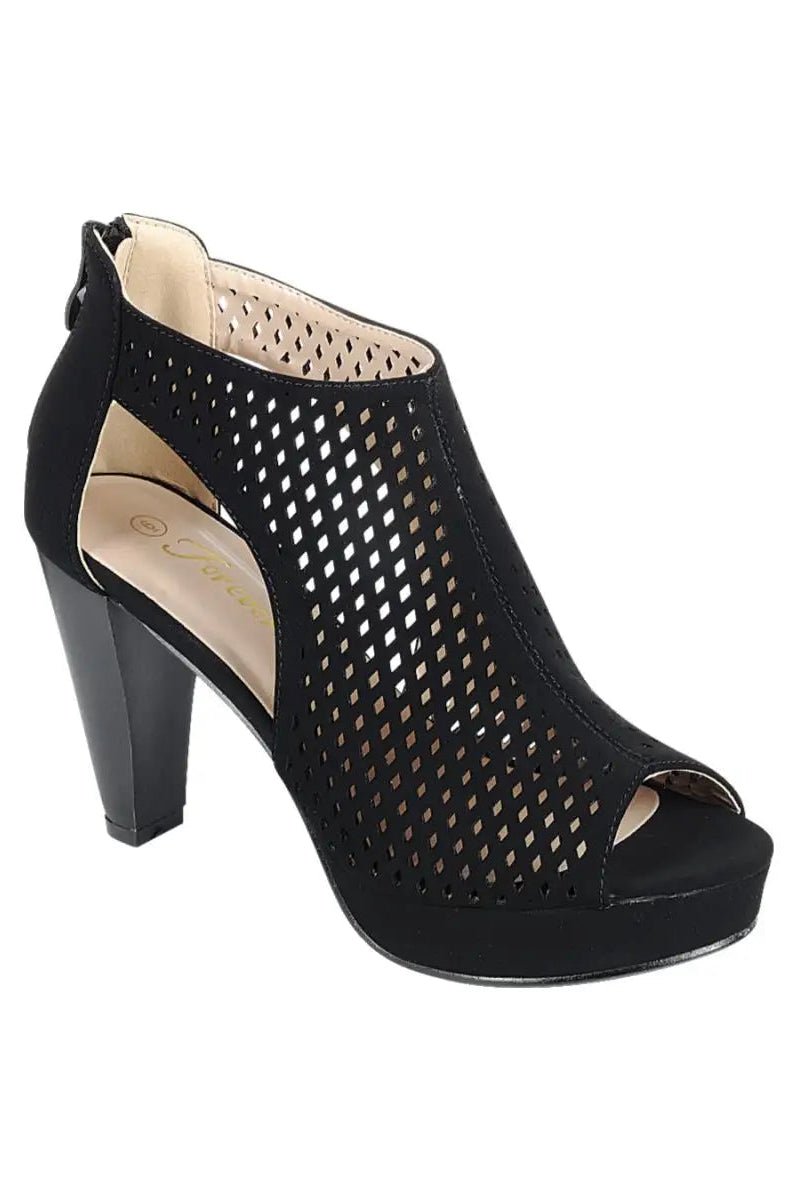 Edgy and chic, the Roxy Caged Heels feature a black nubuck finish with stylish caged straps for a bold, modern look. Perfect for parties, nights out, or special occasions, these heels combine fashion-forward design with versatile wearability.