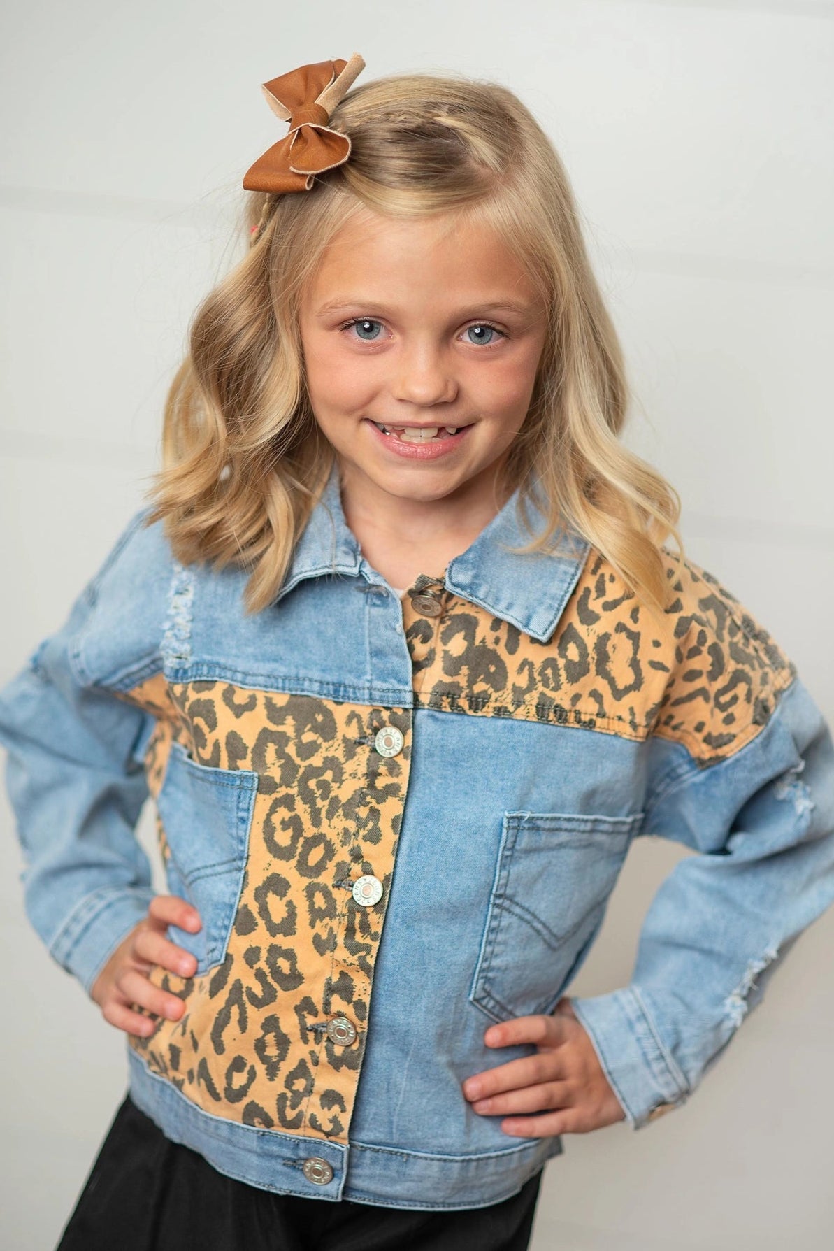 A playful twist on a classic, this Girls Leopard Patch Denim Jacket combines timeless denim with bold animal-print accents. Designed with just the right amount of stretch for comfort, it’s perfect for layering season after season.