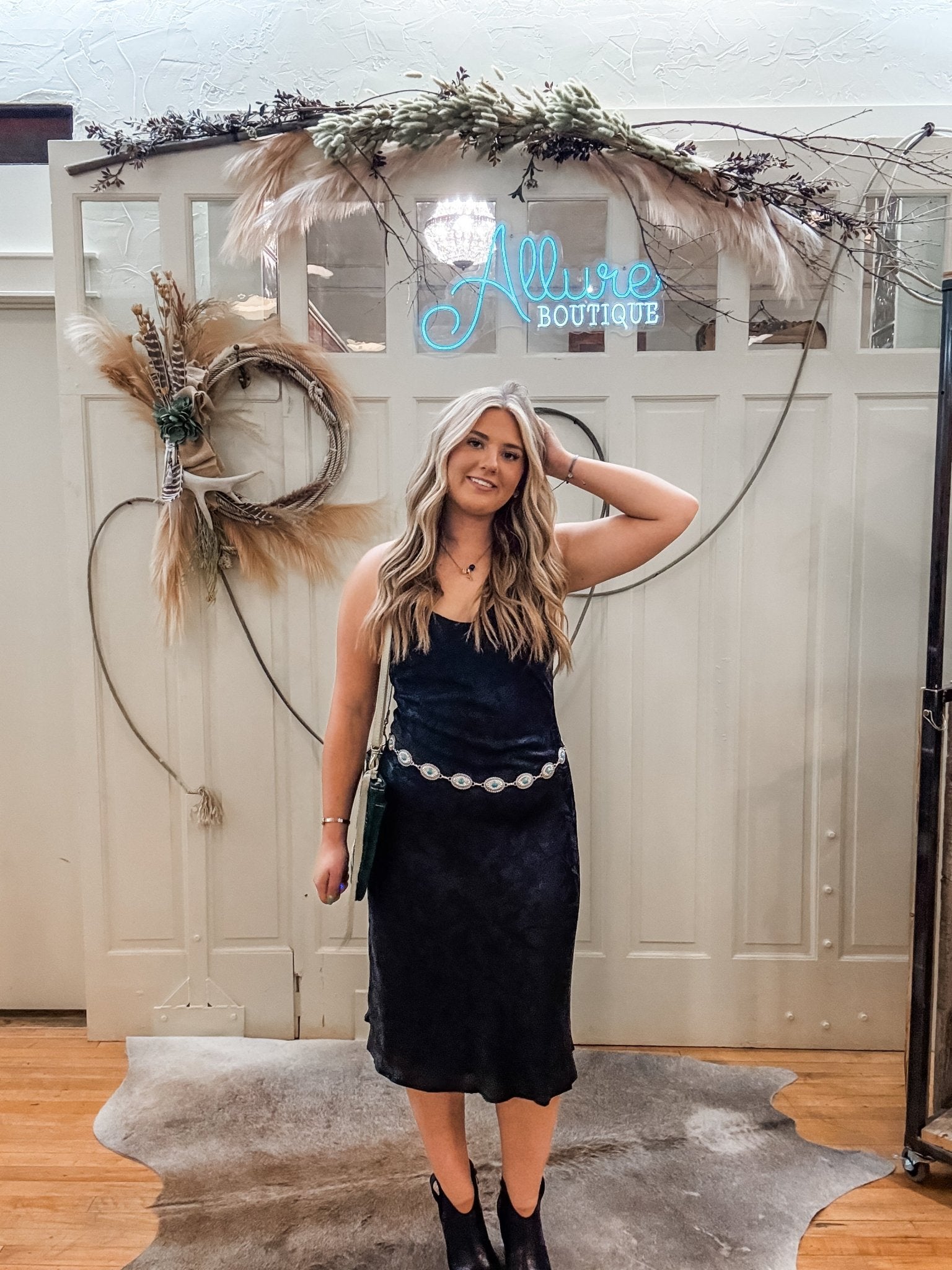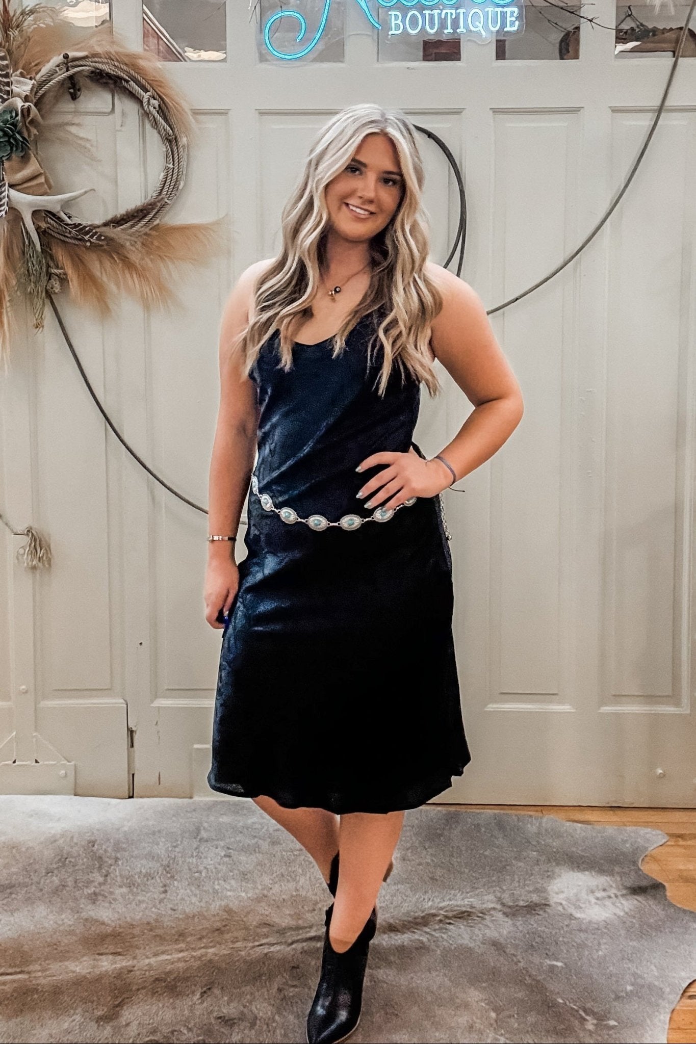 Elegant, effortless, and just the right amount of shine — the Satin Jacquard Slip Dress is a timeless piece with a modern touch. Designed with a subtle floral jacquard pattern woven into the silky fabric, this dress drapes beautifully and moves with you. Adjustable spaghetti straps ensure the perfect fit, making it ideal for layering or wearing solo for an evening out.