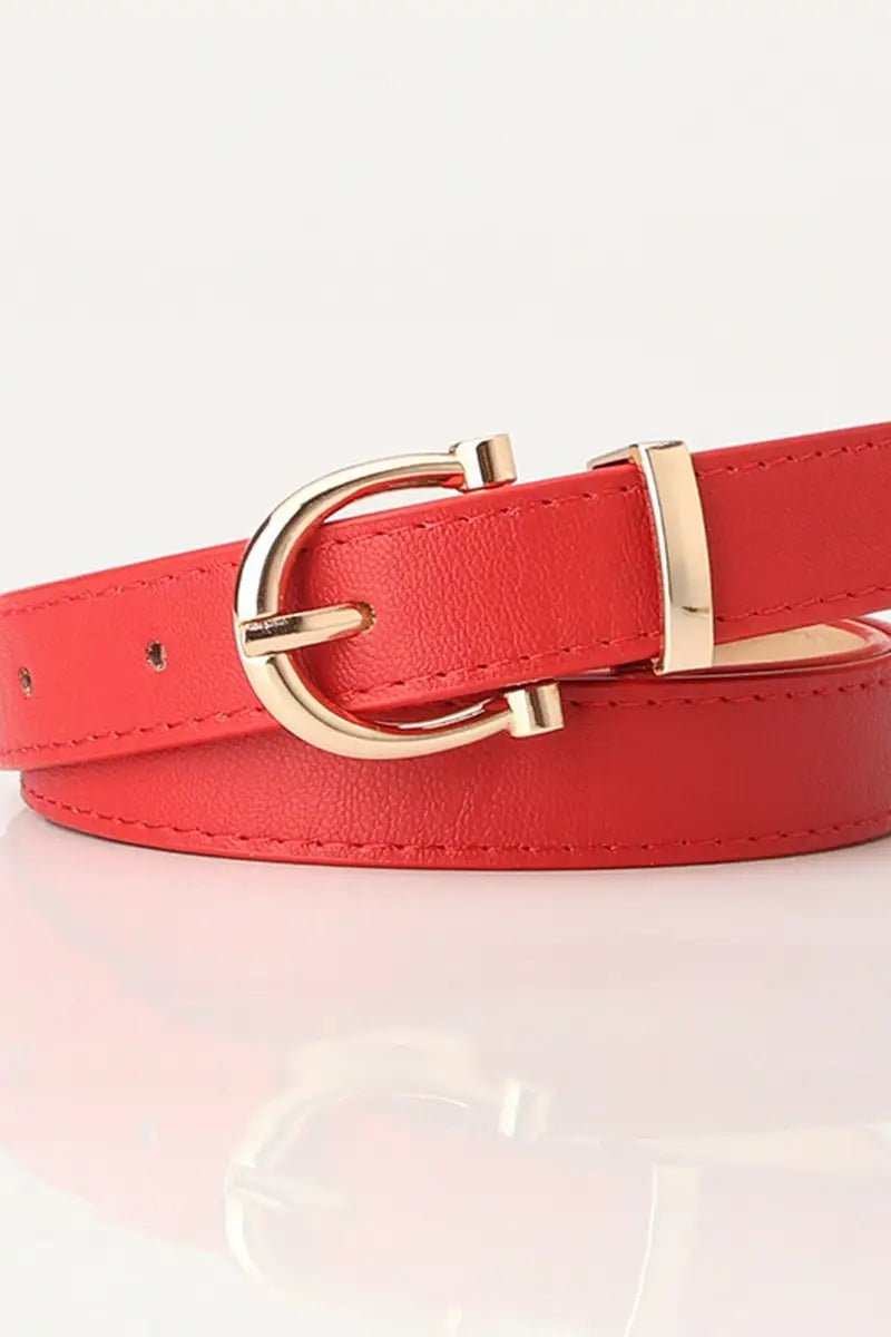 Classic Red Skinny Belt with Gold Buckle