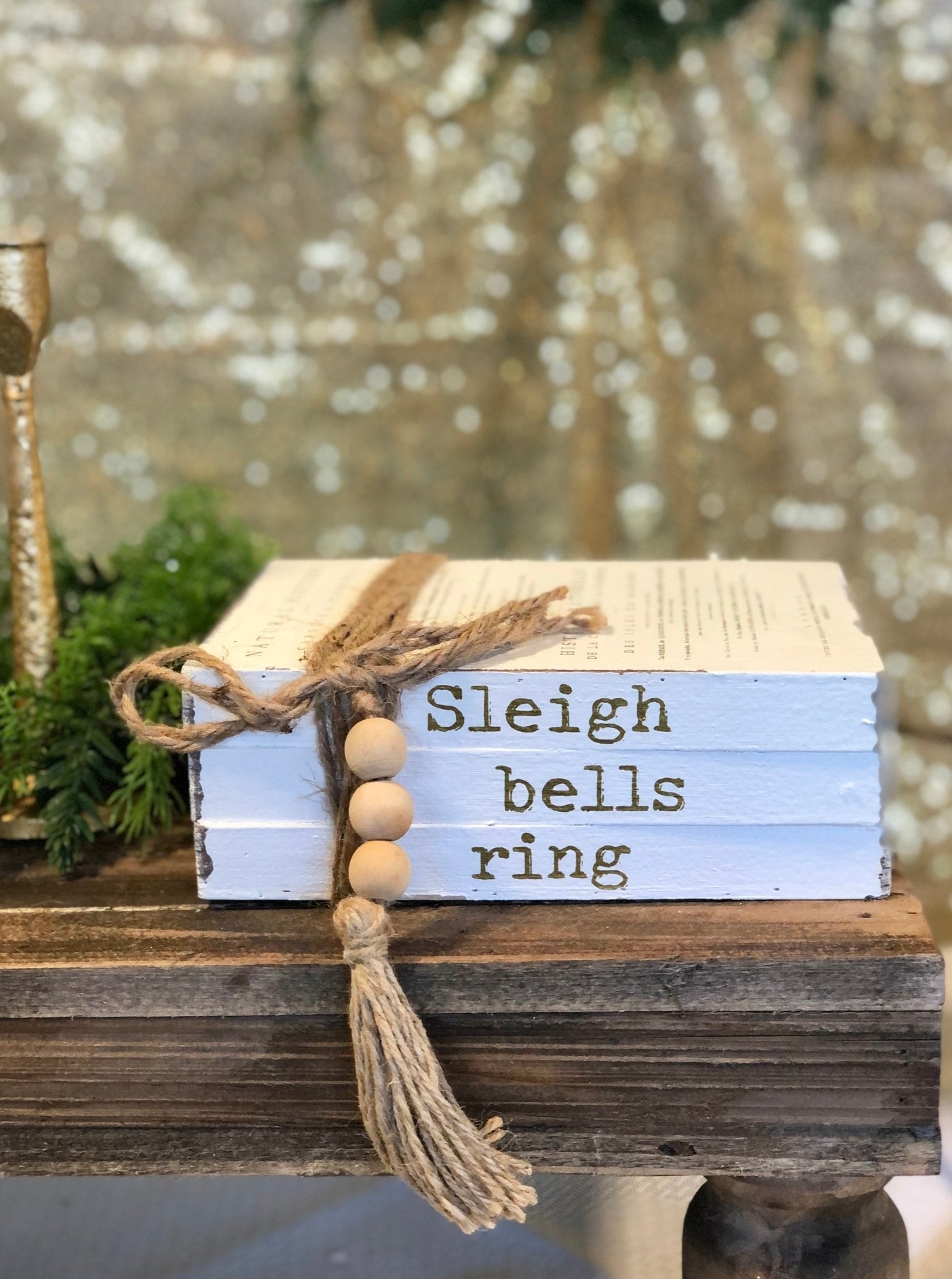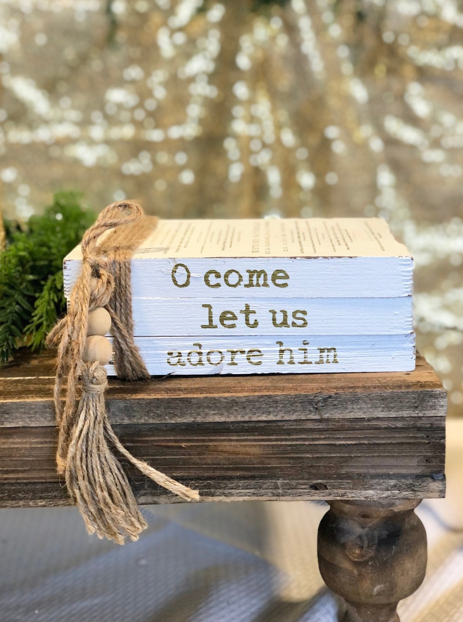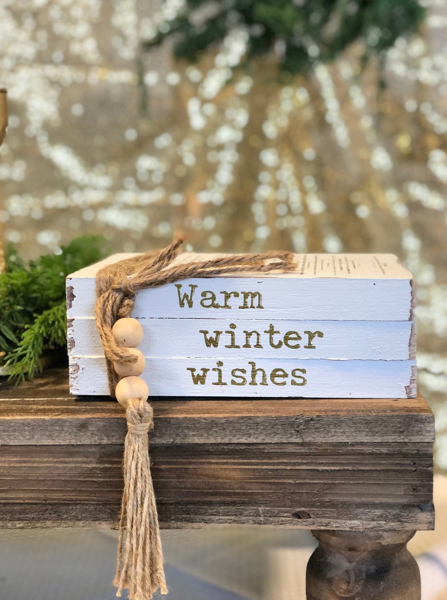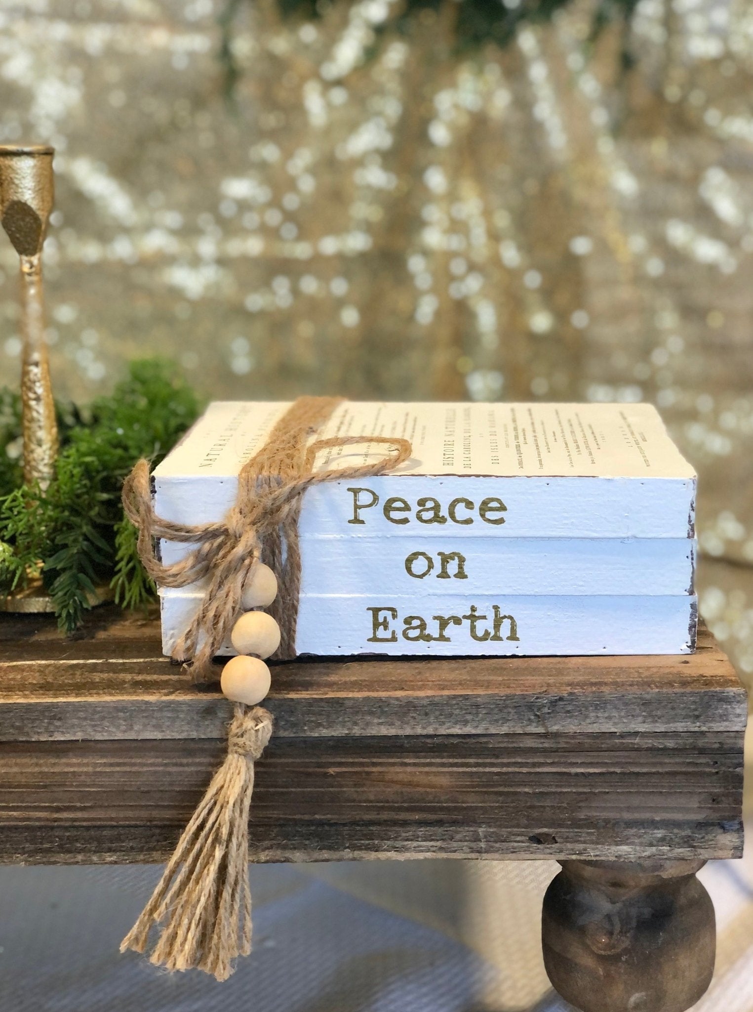 These faux book blocks are an easy way to add festive decor to your shelves. Made out of wood, these come in a set of 6 and each feature a holiday saying on them. With wood beads and a jute tie, these adorable decorations are a festive and stylish way to take up space