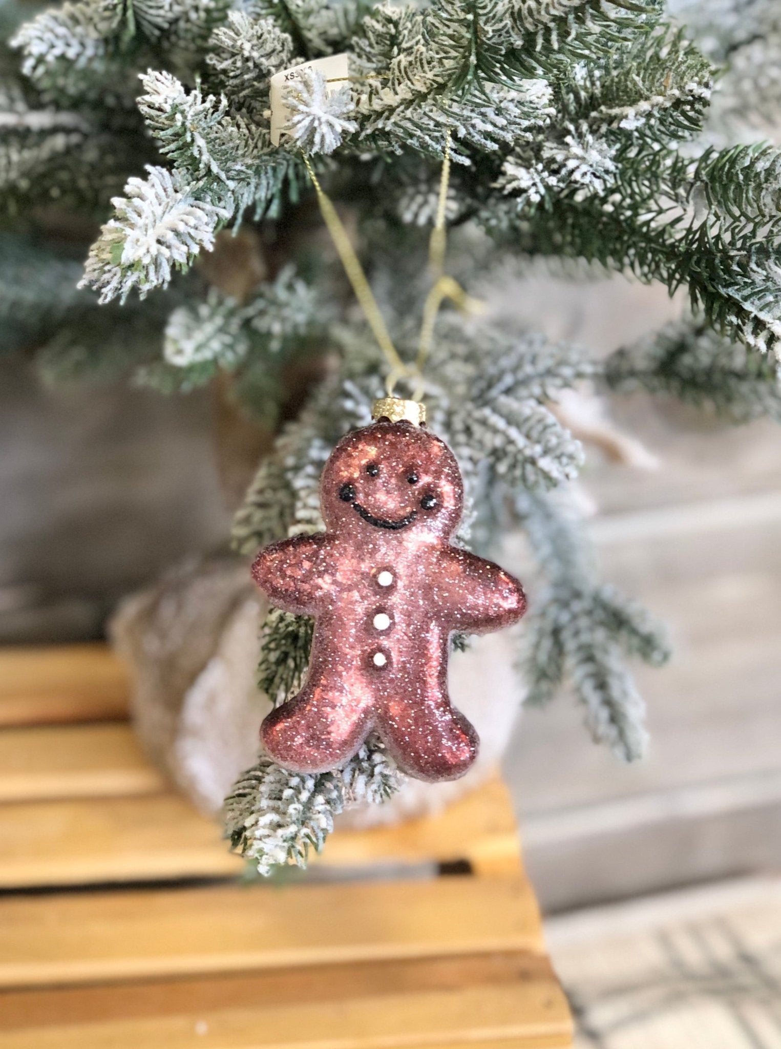 Hand-Painted Glass Gingerbread Ornament with Glitter