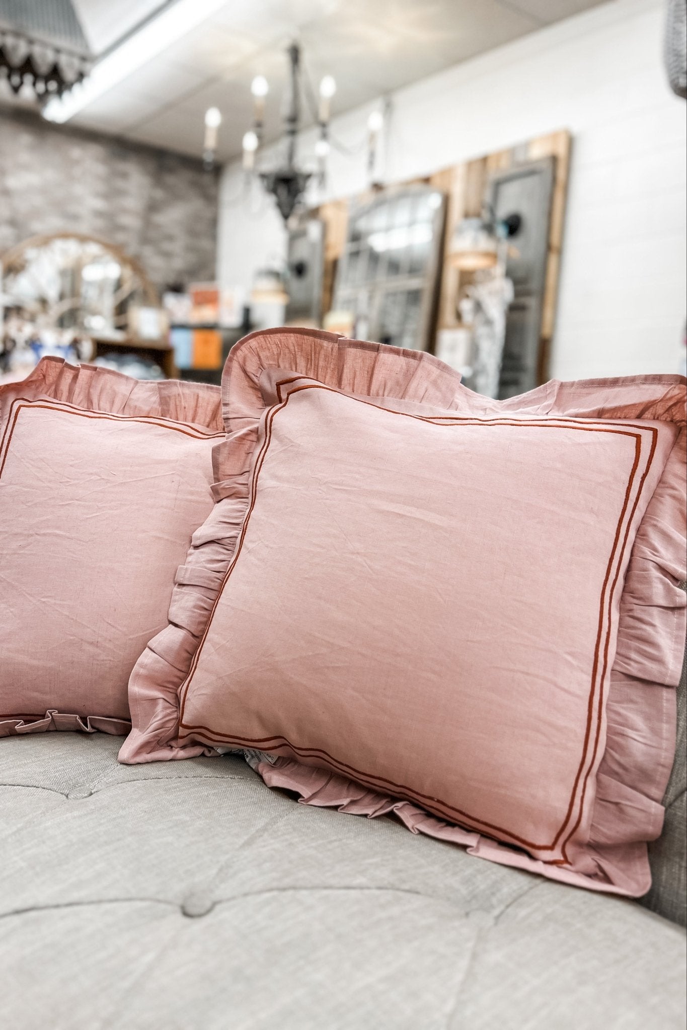 If you want a decorative pillow that adds texture, color, and charm to any room, this pink and coral ruffle pillow is perfect. It brings a playful, cozy touch to your space while staying easy to care for.