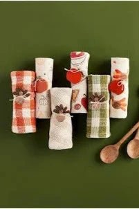 Waffle weave check or cotton multi-print hand towel comes rolled and tied with wooden accent character