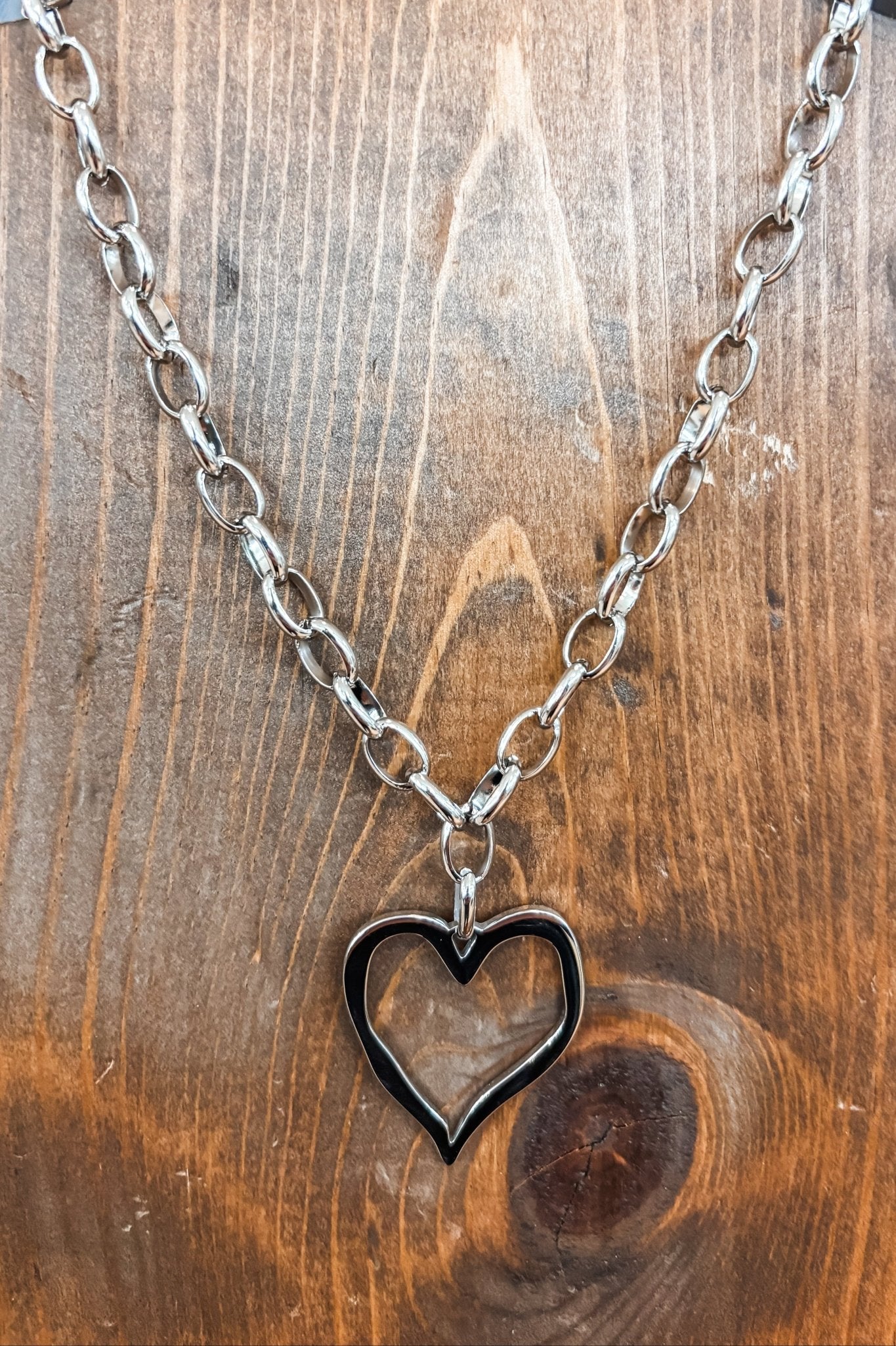 Large Open Heart Necklace - Silver