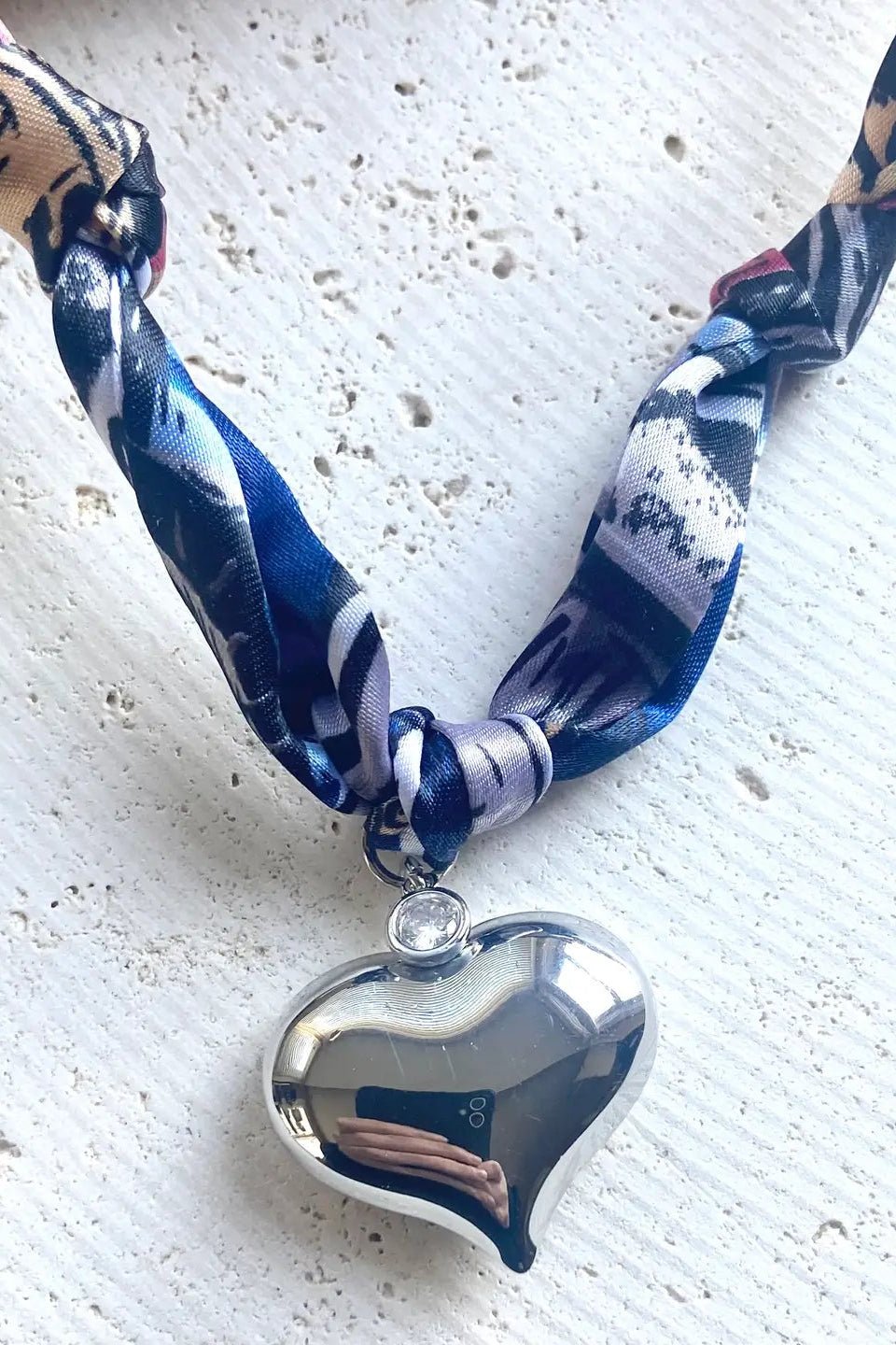 Scarf Necklace - Puffy Silver Heart – Allure Boutique WY