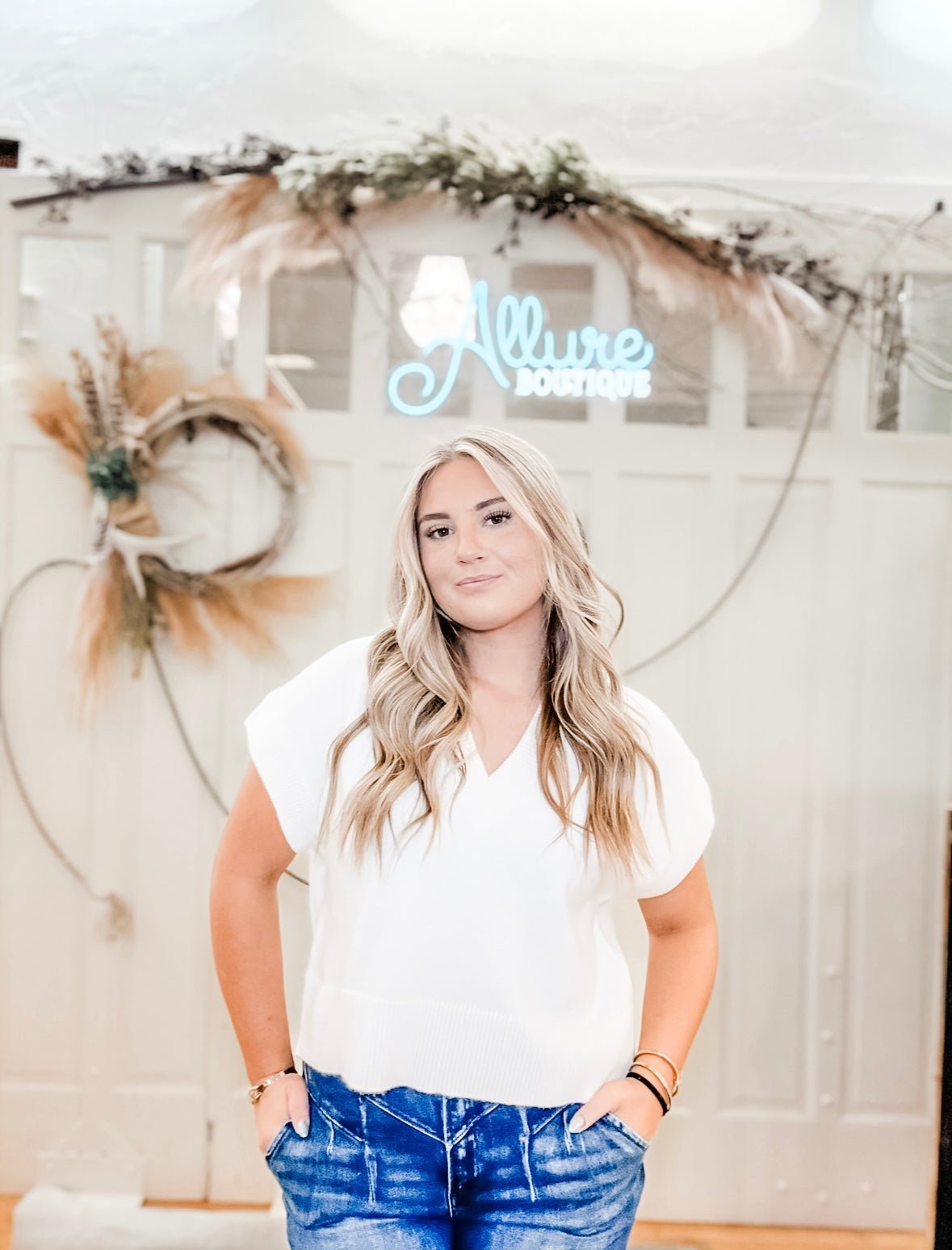 Effortlessly blend comfort and style with the Fallon Short Sleeve Crop Sweater. Designed with a relaxed fit and soft knit texture, this sweater offers a modern cropped silhouette that pairs perfectly with high-waisted jeans or skirts. The deep V-neckline and short sleeves give it a breezy yet refined look — ideal for layering or wearing on its own through the seasons.