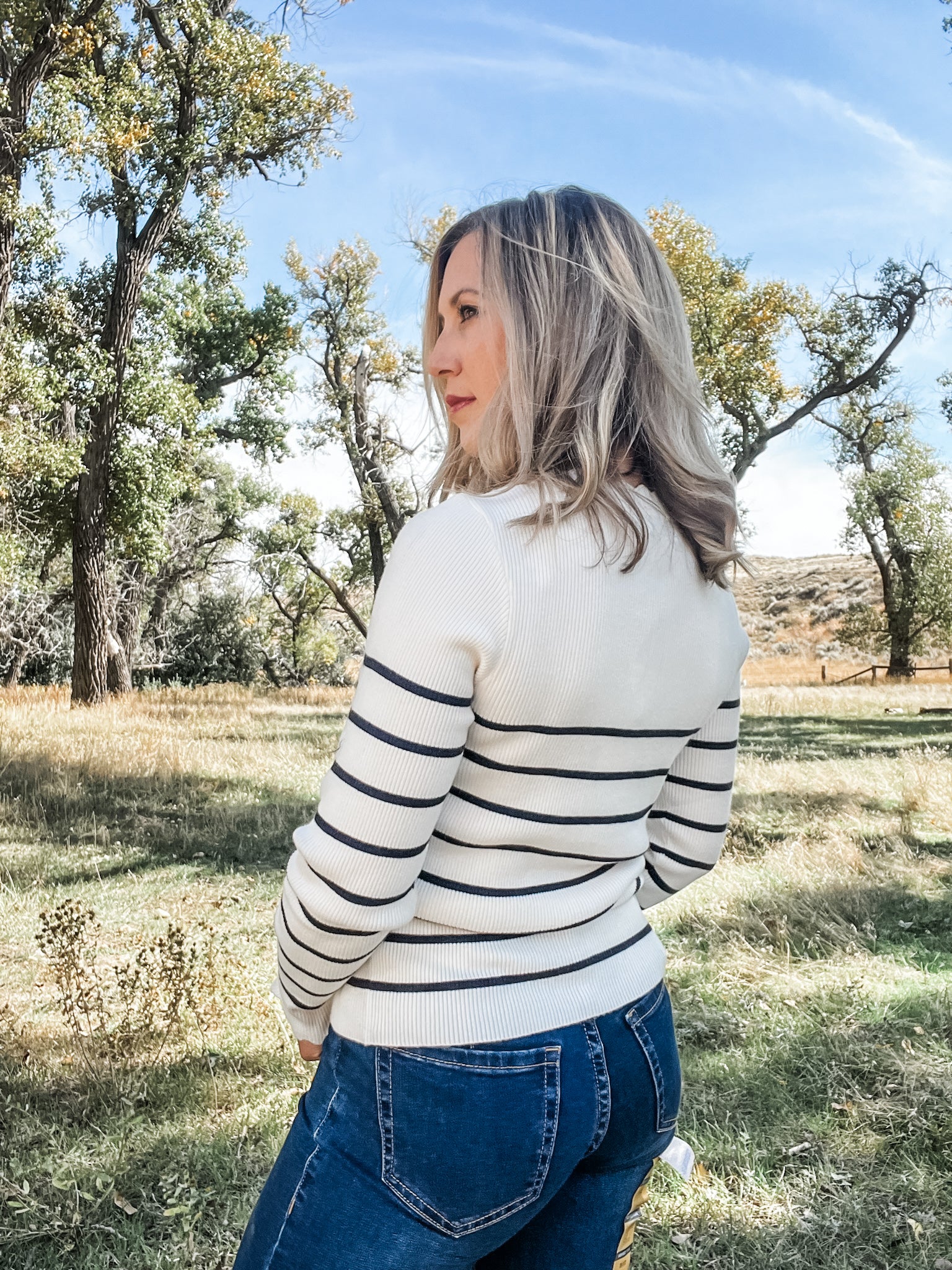 Classic navy + off-white striped knit for versatile styling