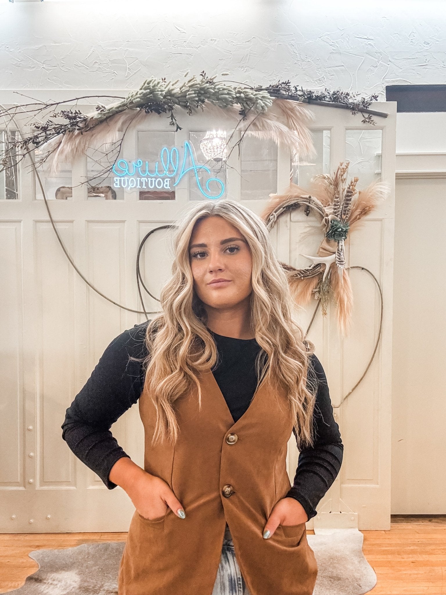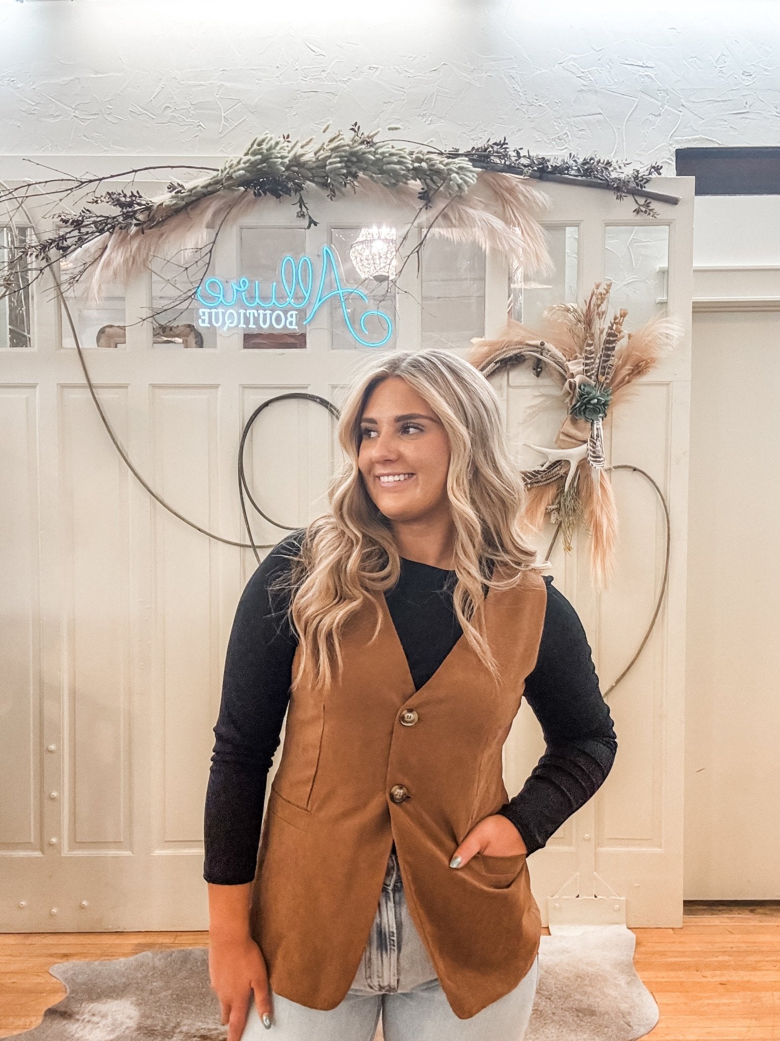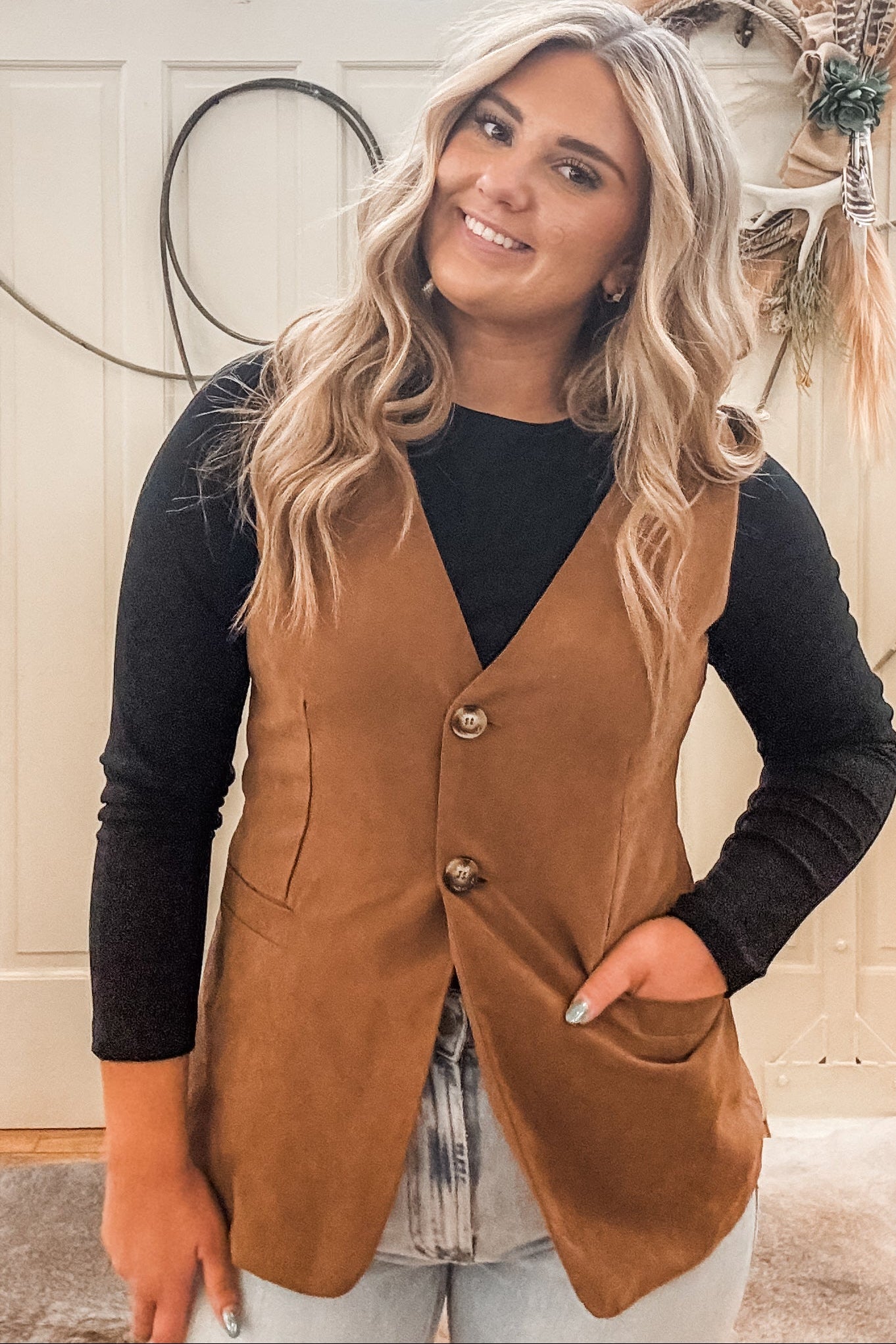Refine your look with the Callie Cutaway Vest, a timeless piece that brings polished sophistication to any outfit. Designed with a sleek V-neckline and tailored fit, it flatters your silhouette while offering structure and style. The two-button closure adds a classic finish, making it the perfect layering piece for both casual and professional settings.