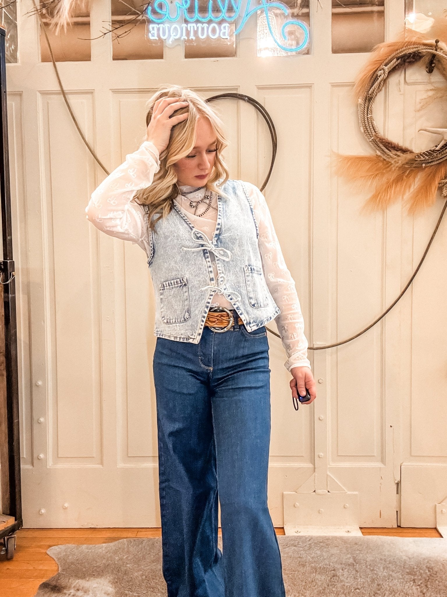 Light Acid Wash Tie Front Vest with Pockets – Allure Boutique WY