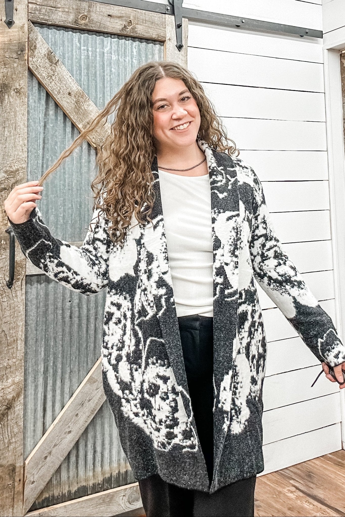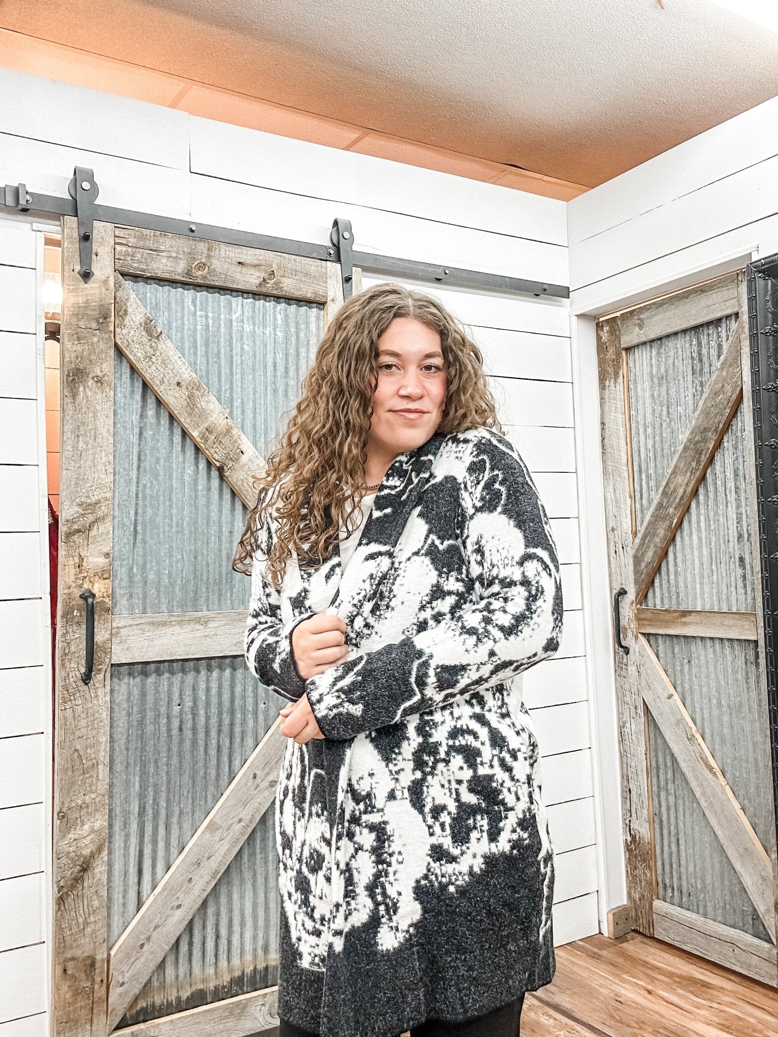The Liverpool Long Sleeve Shawl is where cozy comfort meets refined sophistication. Designed in Liverpool’s exclusive black-and-white floral print, this piece brings the elegance of a coat and the ease of a cardigan together in one versatile layer.