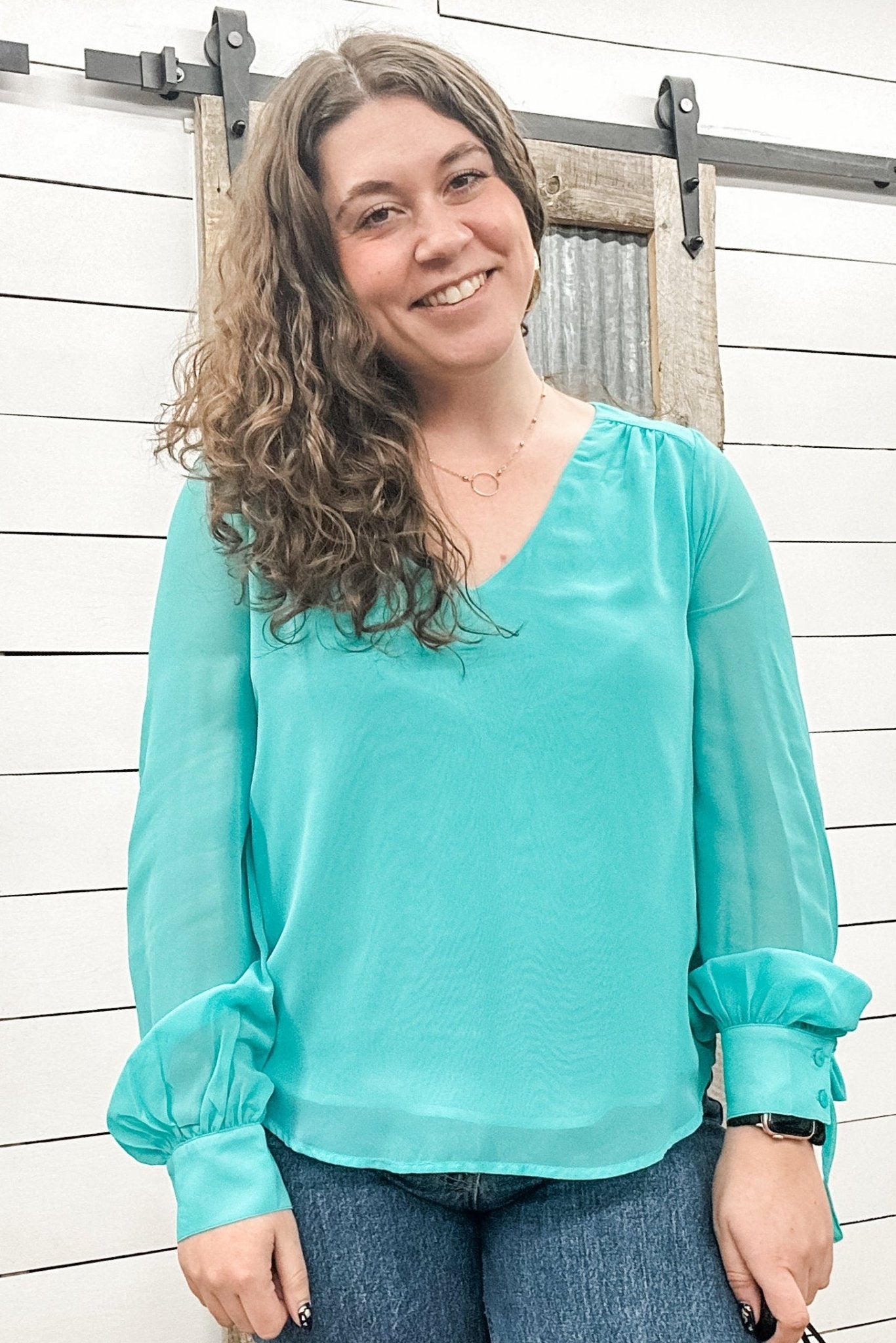 Looking for an easy blouse that feels elevated without trying too hard? This long sleeve woven blouse gives you that soft, polished look with a flowing silhouette that works for both everyday wear and dressed-up moments.