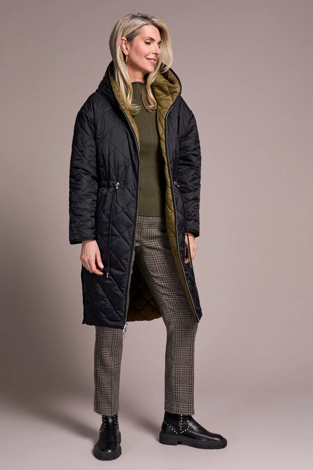 Stay warm and stylish no matter the weather in the Tribal Long Sleeve Puffer Jacket with Hood in Ivy. Designed with a sleek longline silhouette and a reversible design, this jacket offers two looks in one—perfect for effortless outfit versatility. The insulating polyfill keeps you cozy without the bulk, while the hooded neckline and zip-front closure provide extra protection from chilly winds.