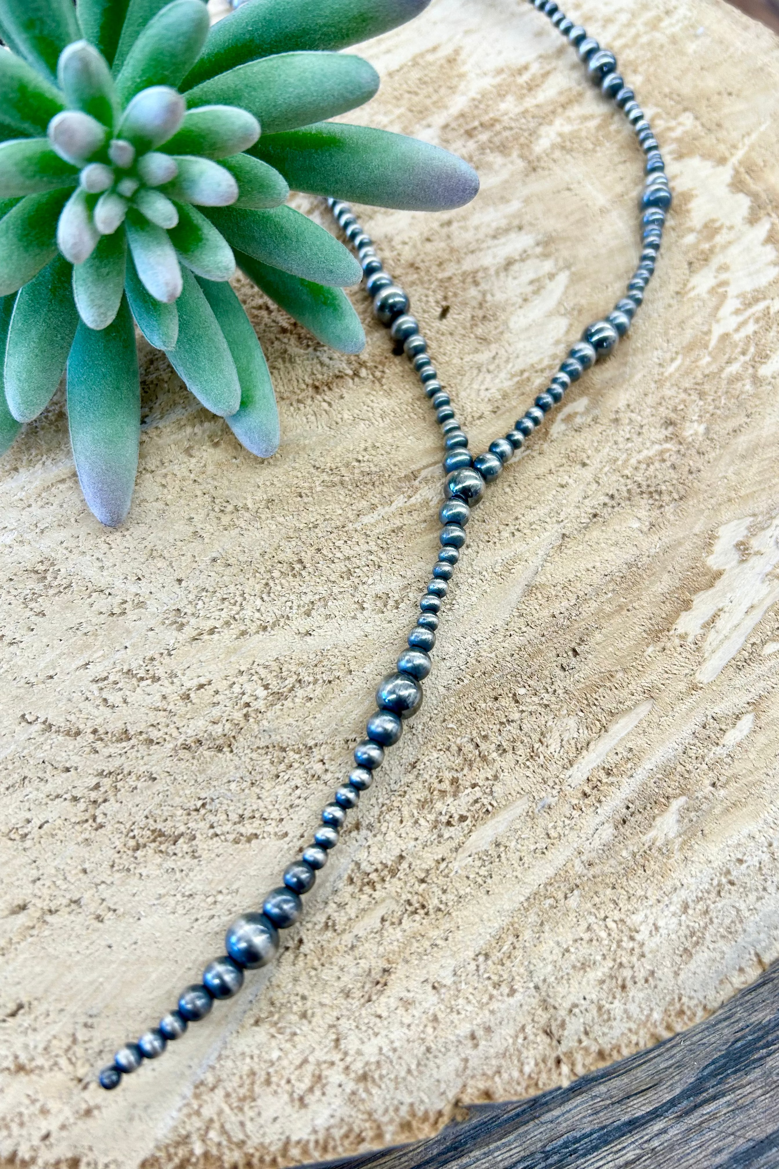 Elevate your Western jewelry collection with this stunning 22" Navajo Pearl Lariat Necklace, featuring alternating bead sizes for a bold yet timeless look that layers beautifully with your everyday favorites.