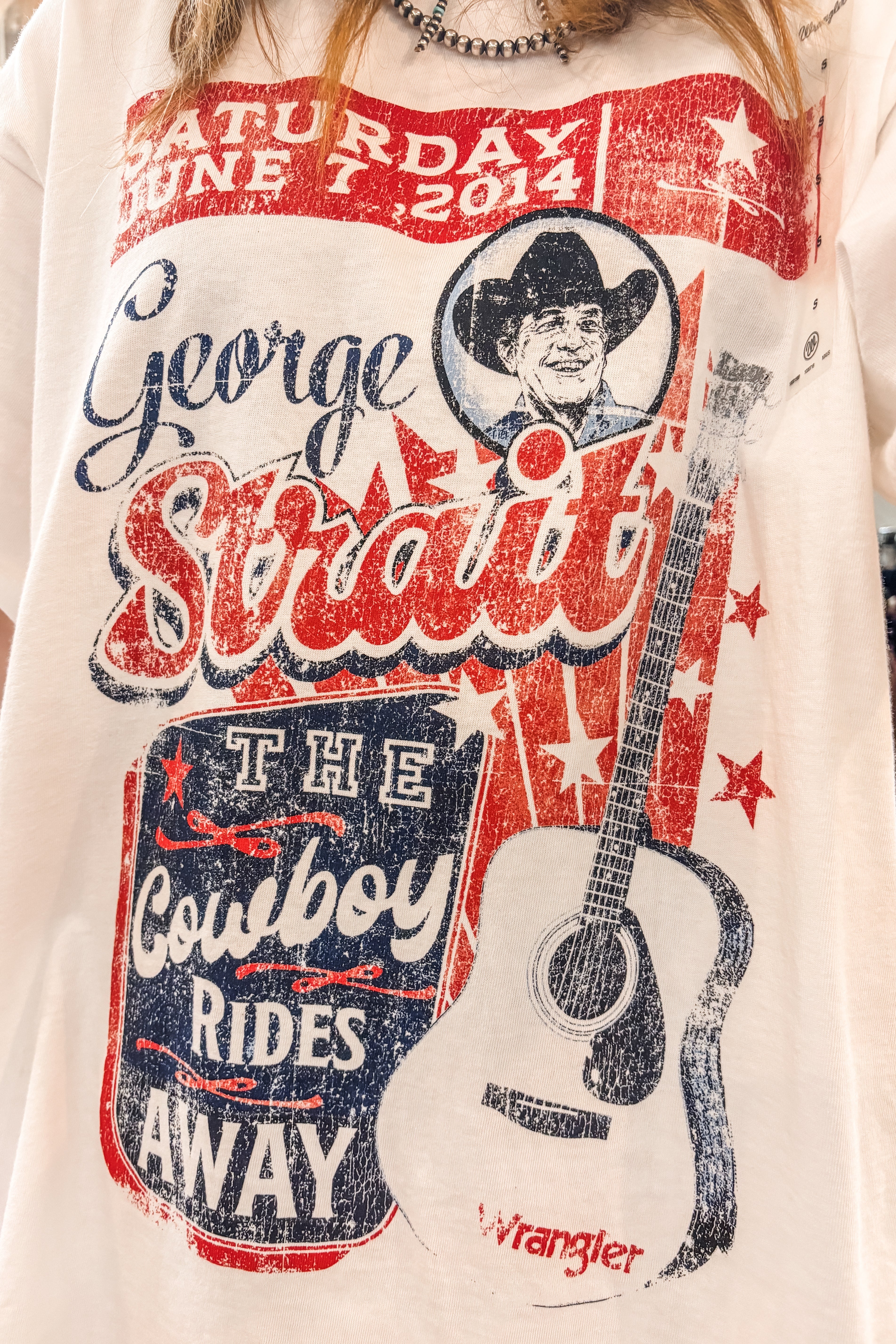 Show your love for country music in style with the George Strait Oversized Concert Tee. Made from soft 100% cotton, this bright white tee features a bold concert graphic and an oversized fit for a relaxed, comfortable look. Perfect for casual outings, concerts, or everyday wear.