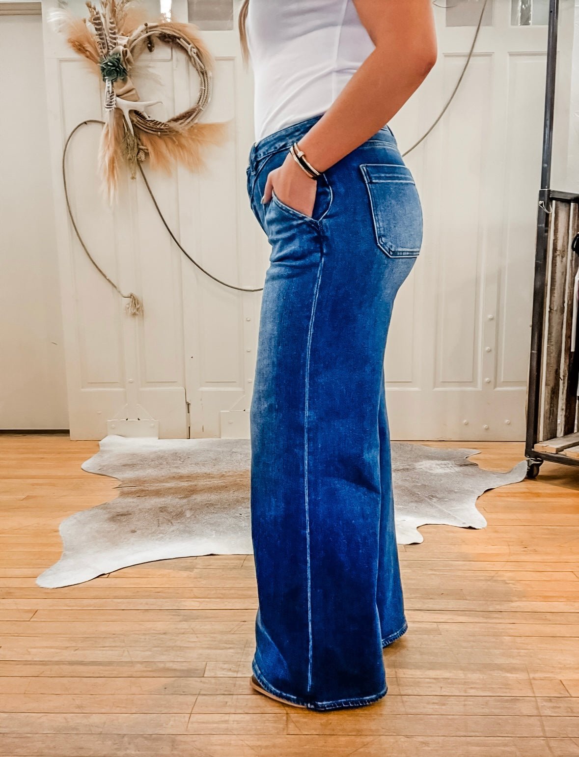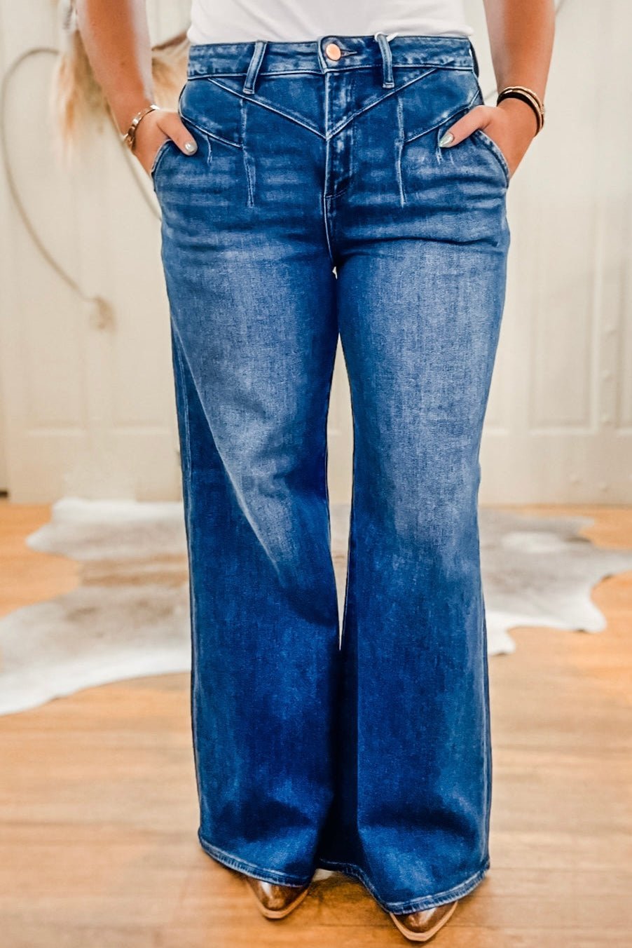 Step out in style with the Miranda High Rise Wide Leg Jeans by Risen. Designed with a statement front yoke seam and a rich dark wash, these jeans elevate your denim collection with modern flair. The high-rise fit flatters the waist, while the wide-leg silhouette offers effortless movement—perfect for brunch dates, nights out, or any moment you want to stand out.