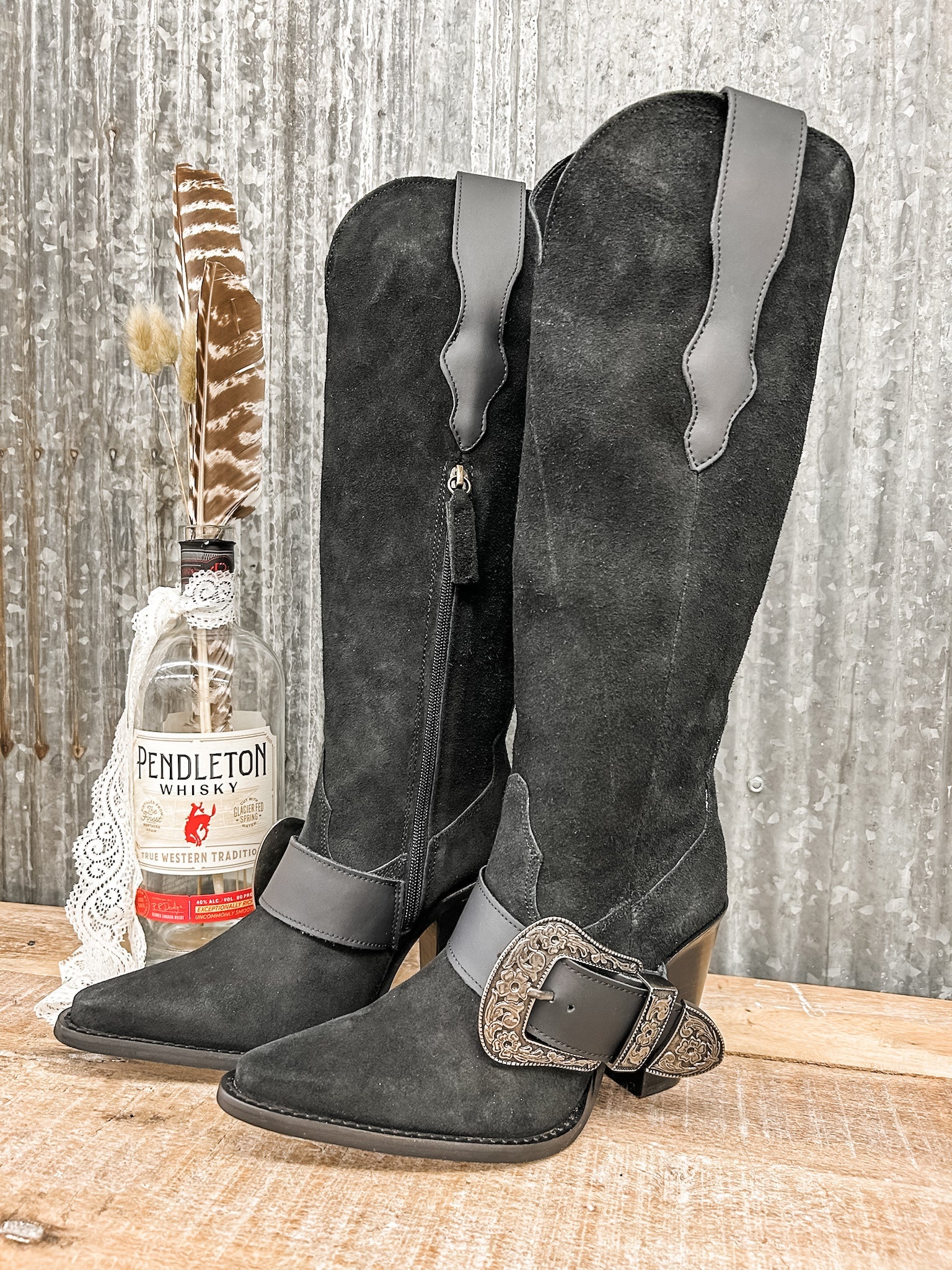 The Dingo Yeehottie Boot is a knee-high suede Western boot designed for bold outfits and confident styling. The 3.25-inch heel gives you height without feeling extreme, and the cushioned insole keeps it comfortable enough for long events, concerts, or nights out. The inside zipper makes them easy to get on and off (no wrestling with tall shafts), while the side buckle adds that standout detail.